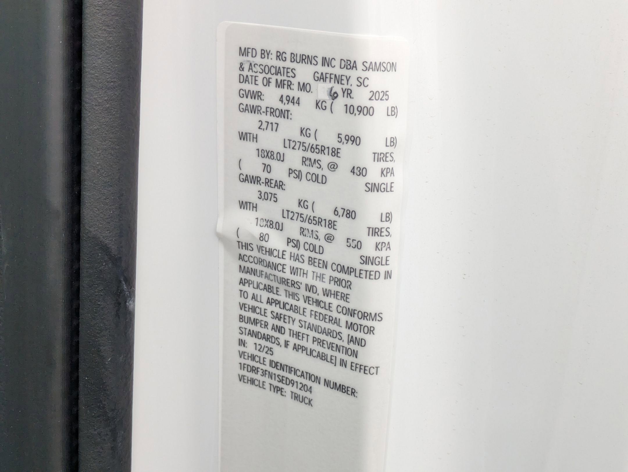 - Gross Vehicle Weight Rating Cap (lbs): 10900