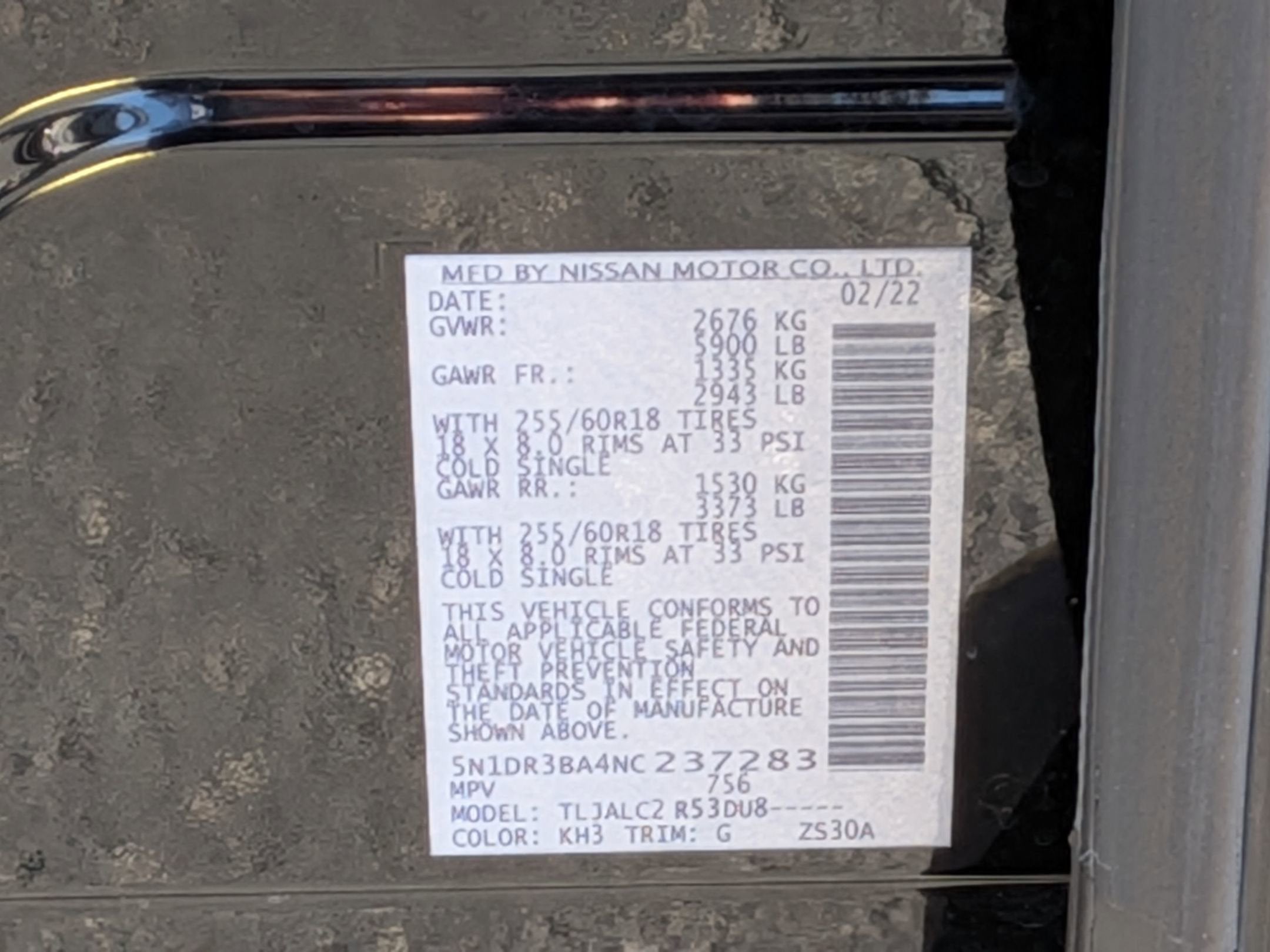 - Tires: P255/60R18 All-Season