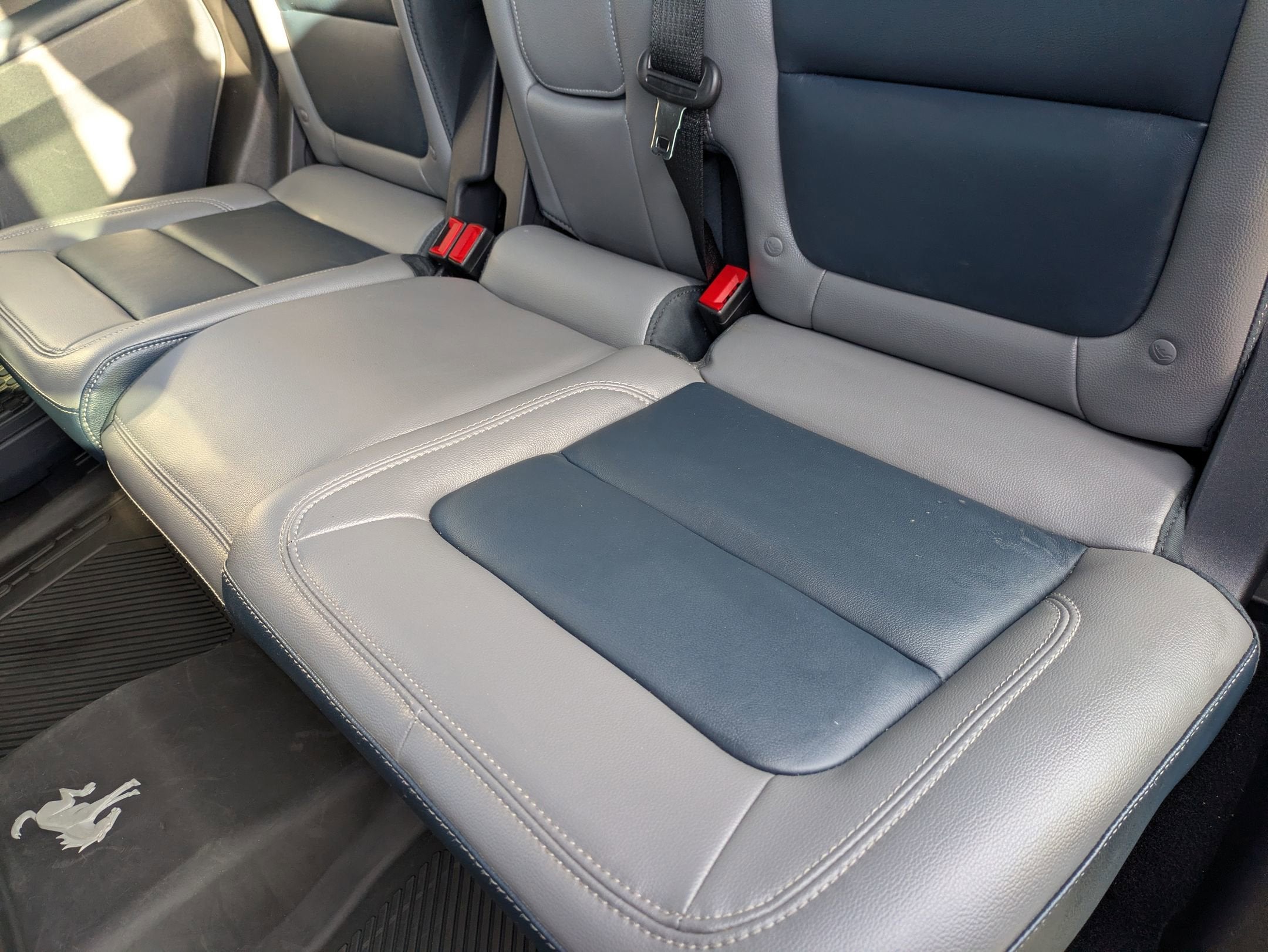 Leather-trimmed seating with Gray/Navy accents