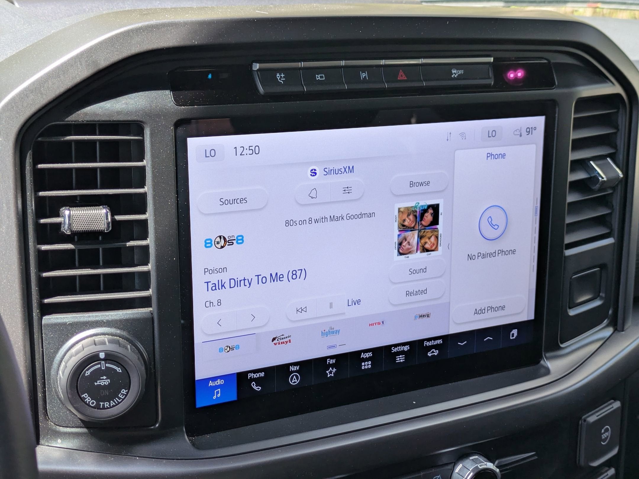 Equipped with the 3.5L PowerBoost full hybrid V6 engine producing 430 horsepower, 10-speed automatic transmission, 4x4, Pro Power Onboard, SYNC 4 with 12-inch touchscreen, wireless Apple CarPlay and Android Auto, Ford Co-Pilot360, BLIS with cross-traffic alert, pre-collision assist with automatic emergency braking, trailer sway control, LED headlights, keyless entry with remote start, power sliding rear window, and 18-inch aluminum wheels.