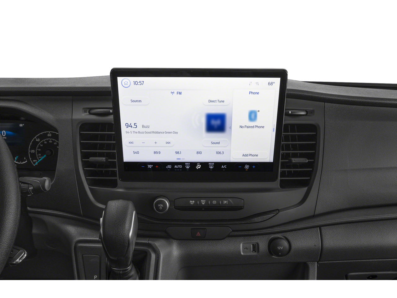 - Radio: AM/FM Stereo w/SYNC 4 & Nav -inc: 12" display, Bluetooth, dual USB ports, embedded voice recognition, connected navigation and 8 speakers (4 front/4 rear)